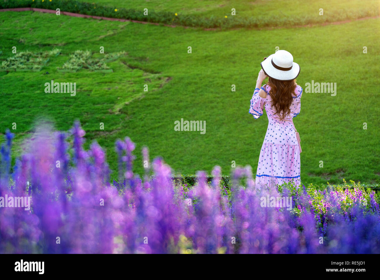 Beautiful woman on a flower garden Stock Photo - Alamy
